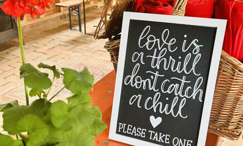 Calling all brides, grooms and wedding parties to be! This is a new and exciting experience to assist you in creating hand written signs and stationery for your upcoming, magical day. This class will include workshop sheets to help you practice a simple way to create calligraphy, and a final creation on a small chalkboard for you to have at your wedding. No experience necessary. All materials provided. See you there!