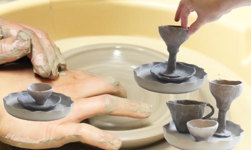 In this 3 hour session you will learn to throw a ceramic tray and hand build a selection of hand-built pinched objects to place on it. Examples include but are not limited to: cups, jugs, candlesticks, miniature dogs.
