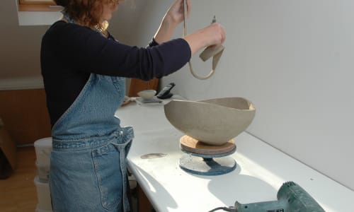 Held on a Saturday and Sunday from 10am - 4pm with only a maximum of 2 students per class this is very focussed learning from a ceramic artist with over 25 years experience. Students will learn how to make a sculptural form using the handbuilding technique of coiling in stoneware clay. On Saturday we will start with a demonstration on how to create the base and then how to coil onto the base with flattened ropes of clay building up the form. Sunday you will complete the form and use coloured slips, stamps, sgrafitto to decorate your piece. Once dry (this…