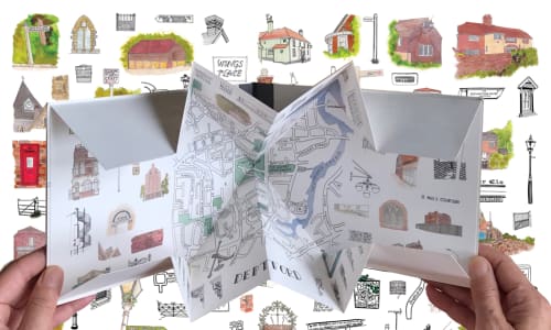 This two day workshop we will be exploring the history of maps, mapping elements, design, drawing, lettering and pop-up techniques to create your own unique map.