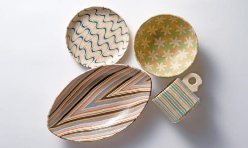 Nerikomi involves marbling, rolling out, stacking and slicing the coloured clays to create intricate and sometimes surprising patterns. The 90 minute session would allow time to make a small dish or saucer and perhaps also a tile or coaster…