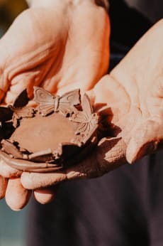 Your online session will start out with a full pottery kit that will be sent to you in advance of the session. I will teach you basic hand-building skills and essential pottery techniques. At the end of your experience you'll have a small collection of clay pieces - making lovely display items, or gifts!