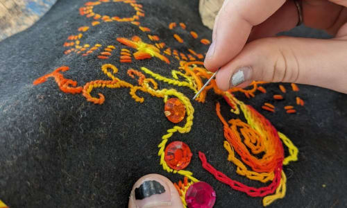 This series of workshops uses the Stitch Club philosophy of allowing each participant to follow their personal project while stretching and challenging their individual skills. Stitching in a group is a particularly human thing to do and is both grounding and affirming.