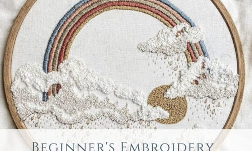 You’ll learn all the basic embroidery stitches (satin, French knot, running, split and lazy daisy), plus lots of other tips and tricks to get you started.