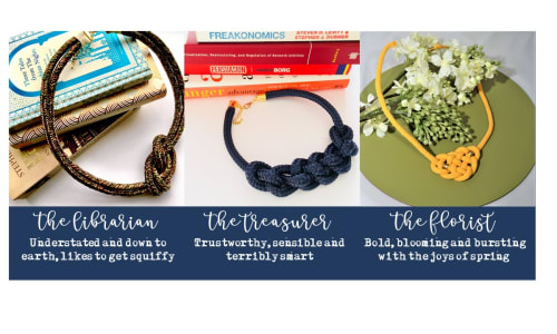 Be amazed what you can create with different types of rope, gold plated findings, some brass beads, a spot of glue and dash of design talent from the lovely Jeni Walker. Jeni is a community artist and crafter who loves spreading the joy of making to all ages.