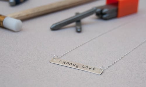 Students will spend time exploring different ways to create marks and surface textures on their necklace or choose the have plain finish.
