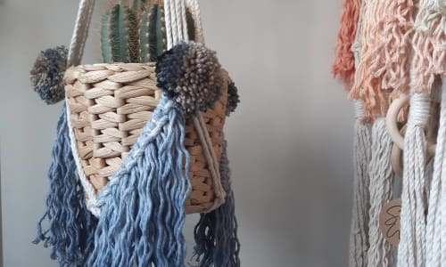 Sunday Works is an East London-based craft business set up and run by India Allin. India is a prop maker by day, with craftiness in her nature, and started Sunday Works as a creative outlet for her interest in fibre art. She produces hand-dyed macrame plant hangers, wall hangings, and garlands, typically embellished with her trademark fringing and pom poms. Everything produced by Sunday Works is about texture, colour, and personality!