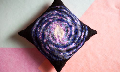 There's nothing quite like a full moon to get your body out of whack. Let's do some cross stitch to calm ourselves down and make some beautiful pieces of textile art. We will walk you through the simplicity of cross stitch by working on these ready-printed images of planets and stars. This is a very relaxed class for beginners to get to grips with cross stitch.