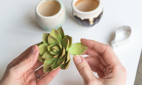 During the workshop you will have a great chance to try unique material - polymer clay. It's very soft and smooth mass that let you to create any flower or plant. You will make classically simple succulent that then would be "planted" in the small ceramic pot.
