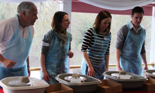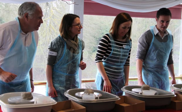 The session is taught by professional potters with over forty years experience of making pottery and many years of teaching it too. Handbuilding techniques and the traditional potters wheel are taught during the session. You will produce several pieces of work which you can have fired if you wish. The pottery session is concluded with a review of your work produced and a choice of glaze colour for your finished work.