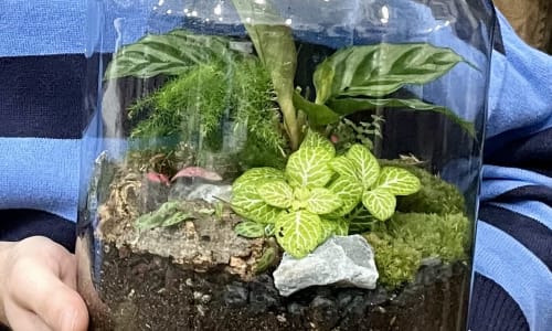 We’ll take you through the key steps in building the foundations of your terrarium for a heathy long lived ecosystem. You'll have the choice of lots of interesting plants to use as well as decorative moss, bark, gravel and stones to use to decorate your miniature garden.