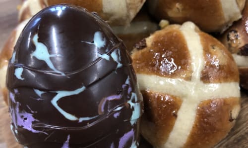 A full day of Easter fun. making a batch of hot cross buns and your own Fairtrade chocolate Easter eggs.
