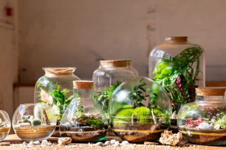 Terrariums are self-sustaining ecosystems enclosed in glass. Join our terrarium workshop and learn how to create your very own self-sustaining ecosystem in style and how to care for them.