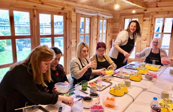 A fabulous afternoon dabbling with wax. I was a bit concerned that a beginners course might be a bit basic but we learnt a lot of useful tips about types of wax an wicks, then made several different styles of candles to take home. The time flew by. Although three of us went together, there were several ladies on their own and we had a great interaction. Cosy classroom in a garden room (with toilet facilities).