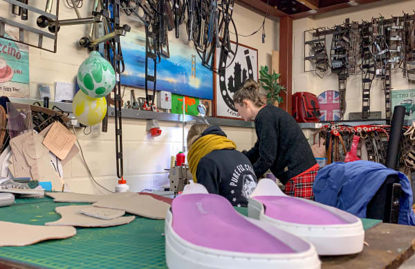 I really enjoyed designing and making a pair of trainers at Love and Salvage. The teacher was informative, enthusiastic and encouraged me to realise my design. It was brilliant and an empowering process and I'd highly recommend as either personal experience or as a unique gift.
